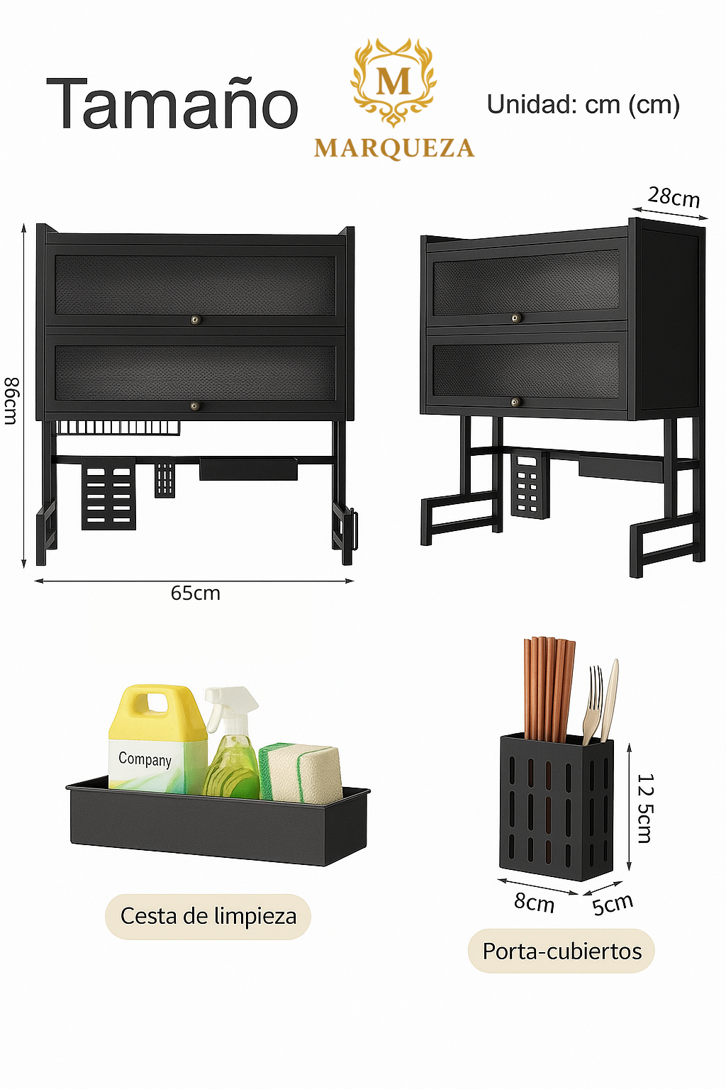 El Escurridor 2 Niveles con Gabinete 🧺 te permite organizar platos, vasos, utensilios y más en un solo lugar, manteniendo tu cocina limpia y moderna.